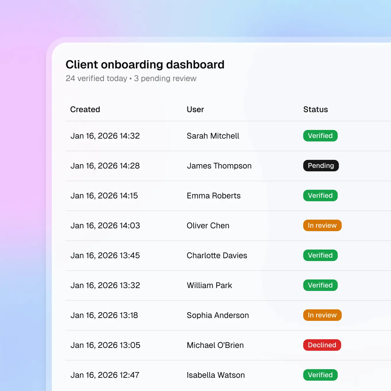Client onboarding